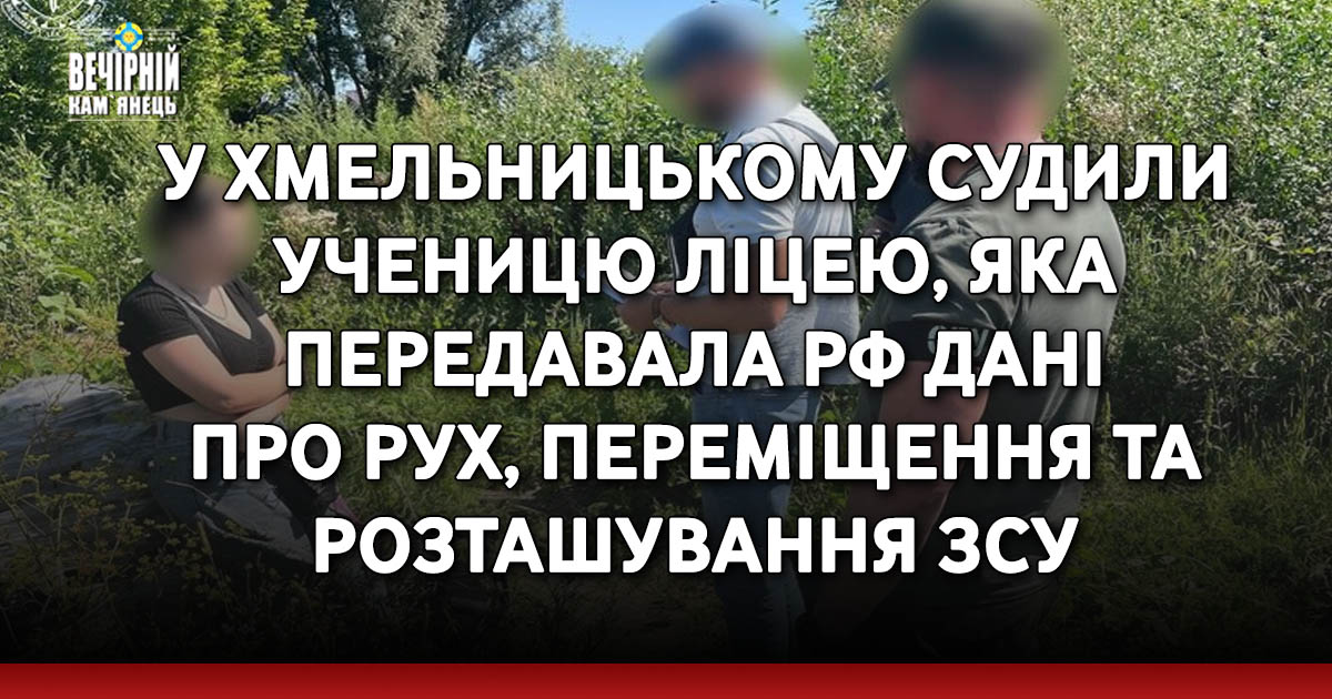 Суд визнав винною ученицю 11 класу ліцею №15 у Хмельницькому у незаконному поширенні інформації про рух, переміщення та розташування Збройних сил України та передачі цих даних представнику іноземної спецслужби.