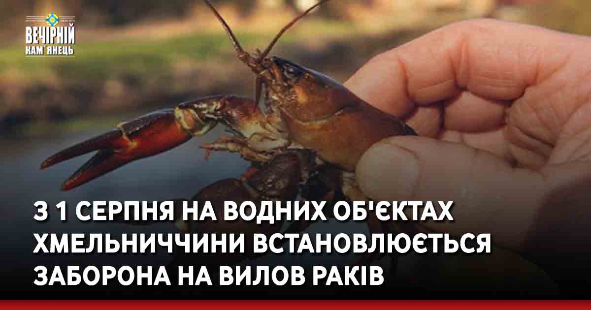 З 1 серпня по 20 вересня, у звязку з другою линькою, встановлено заборону на лов раків у рибогосподарських водних об’єктах Хмельницької області.