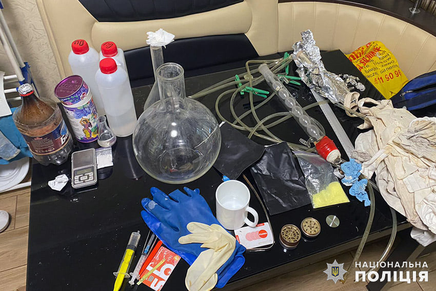 Також під час обшуку в одного із знайомих затриманого правоохоронці вилучили предмети, зовні схожі на лабораторне обладнання для виготовлення наркотичних засобів.