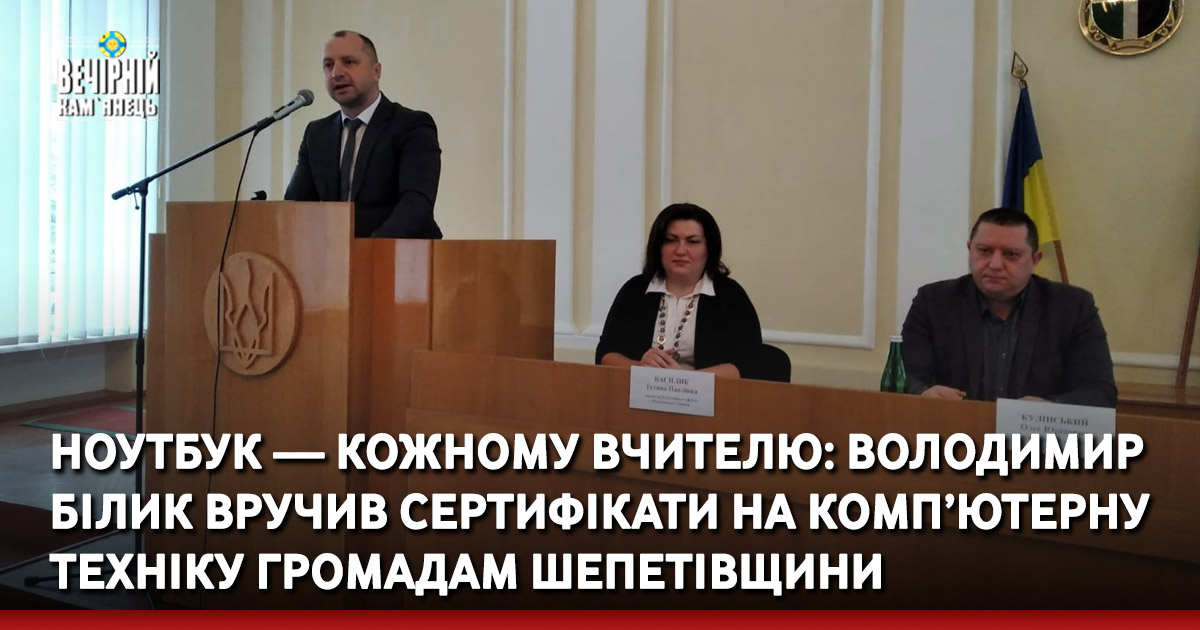 Загалом освітяни Шепетівщини отримали 399 ноутбуків. Це стало можливим завдяки реалізації ініціативи Президента України Володимира Зеленського Міністерством цифрової трансформації України та Міністерством освіти і науки України проекту «Ноутбук — кожному вчителю».