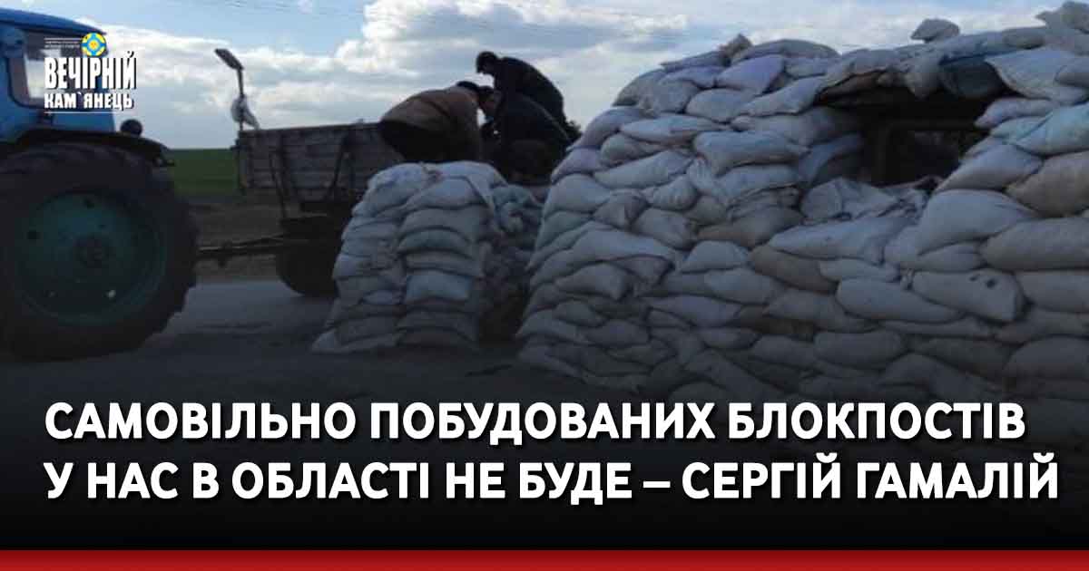 Голова ОВА Сергій Гамалій повідомив, що самовільно побудовані блокпости у Хмельницькій області прибиратимуть.