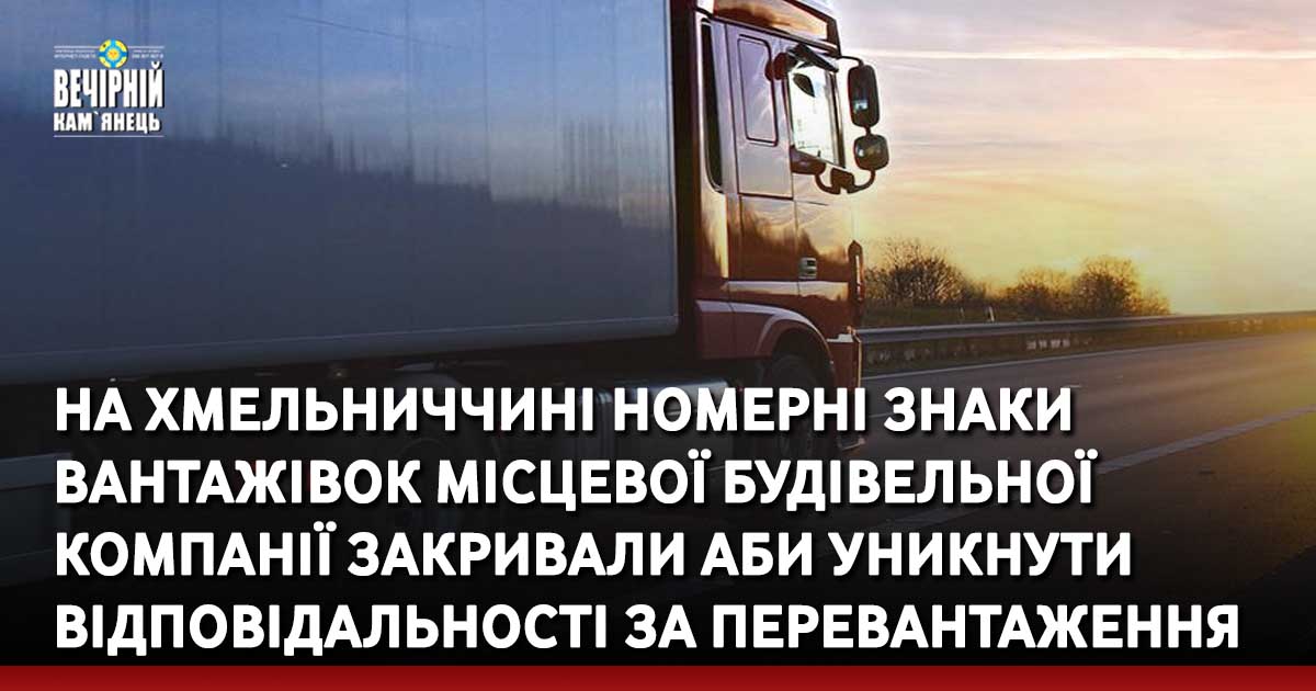У Хмельницькій області водії вантажних автомобілів, що належать власнику місцевої будівельної компанії, для уникнення відповідальності закрили передні номери своїх машин перед проїздом через комплекс автоматичного зважування у русі.