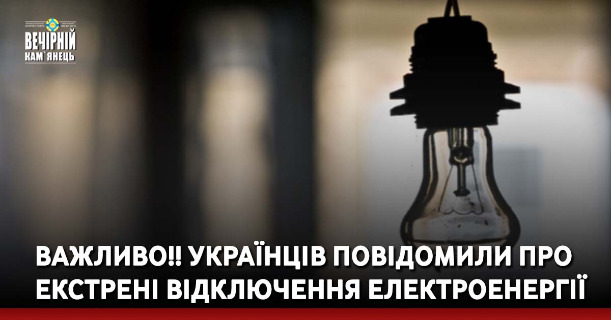 Через масовані обстріли критичної інфраструктури вводяться екстрені відключення електроенергії!