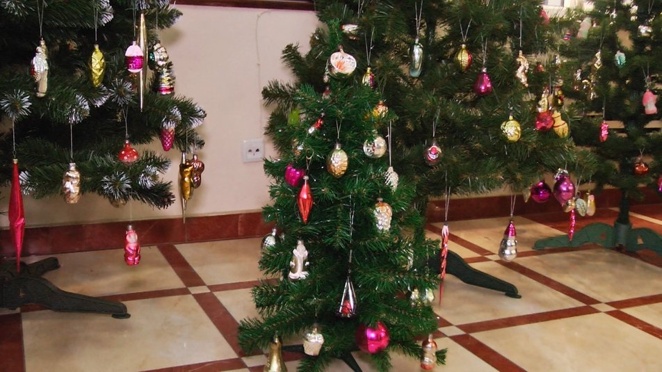 Кількома сотнями новорічних іграшок, більшості з яких не менше півсотні років, прикрасили фоє в академічному обласному театрі ляльок.