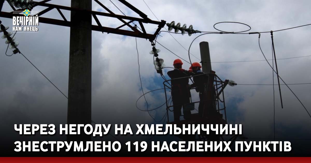 Унаслідок погіршення погодних умов у Хмельницькій області знеструмлено 119 населених пунктів.
