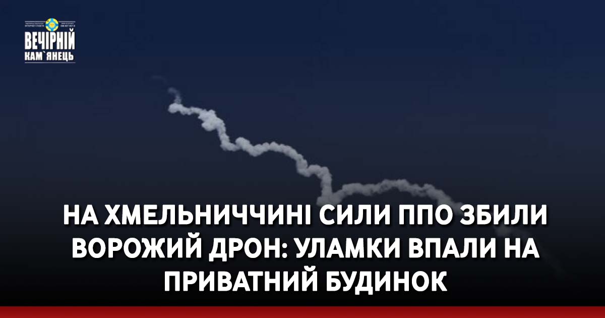 За інформацією посадовця, внаслідок збиття ударного повітряного об’єкту уламки впали на дах приватного будинку на території Хмельницького району. Пожежі немає. Травмованих немає. Всі відповідні служби працюють на місці події.