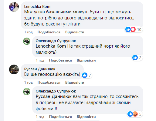 « З такою інформацією слід бути обережними. Нагадаю за виставку дронів у Чернігові 19 серпня 23 року, куди був точний приліт. Постраждало багато людей, в тому числі дітей. Памʼятайте, серед "своїх" теж є багато гнилих» , - йдеться у коментарях.