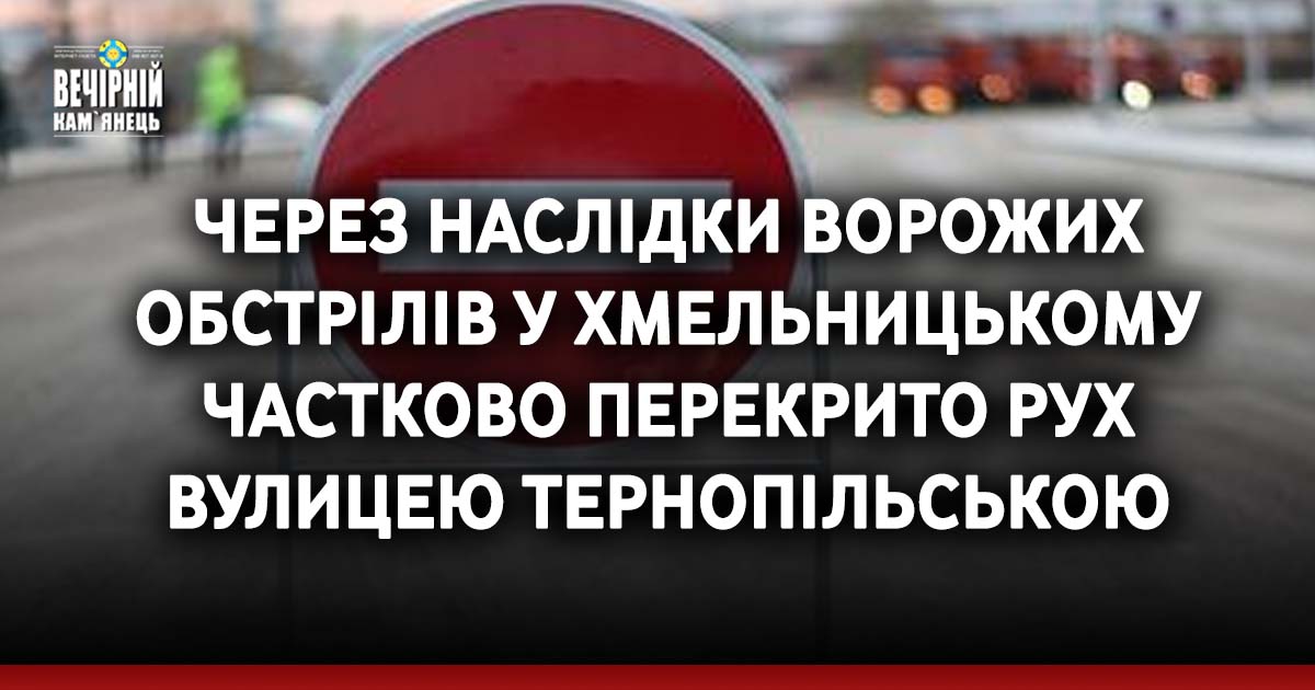 У Хмельницькому через наслідки атаки частково перекрита для руху вулиця Тернопільська. Про це інформують у Хмельницькій міській раді.