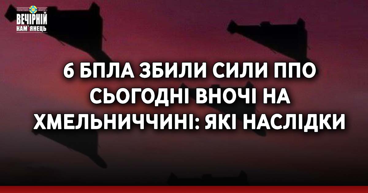 Сьогодні вночі, під час повітряної тривоги, наші сили ППО збили 6 БПЛА типу «Шахед» в межах Хмельницької області.