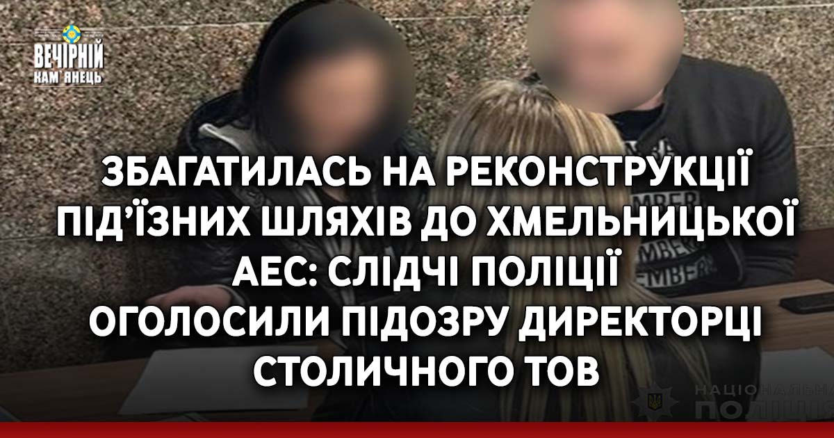 Слідчі слідчого управління ГУНП в Хмельницькій області оголосили підозру у вчиненні злочинів, передбачених ч. 5 ст. 191 (Привласнення, розтрата майна або заволодіння ним шляхом зловживання службовим становищем) та ч. 1 ст. 366 (Службове підроблення ) Кримінального кодексу України директорці столичного товариства з обмеженою відповідальністі.