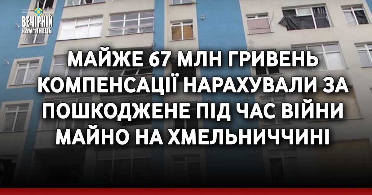 В рамках урядової програми “єВідновлення” у Хмельницькій області нараховано майже 67 мільйонів гривень компенсації за пошкоджене під час війни майно, відповідно до заяв постраждалих.