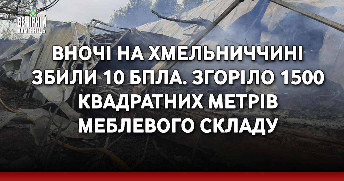 На Хмельниччині через нічну атака дронами згорів склад зберігання меблів.