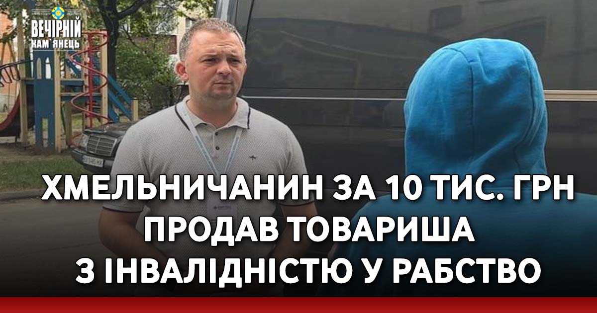 Житель Хмельницького за 10 тис. грн продав у рабство свого товариша – 26-річного місцевого жителя Ігоря, який з дитинства має інвалідність. За словами потерпілого, у нього силою відібрали документи та вже везли у Київ жебракувати, проте поліція вчасно зреагувала та звільнила його. Про це повідомило 1 жовтня Суспільне.