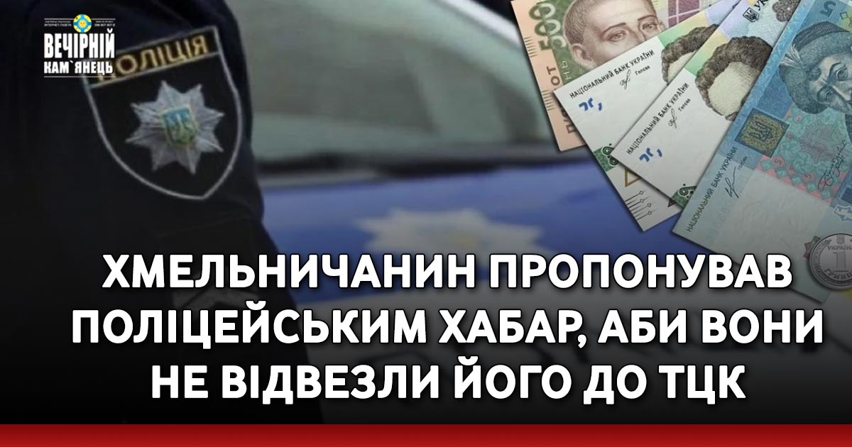 Аби уникнути доставки до ТЦК він поклав на переднє сидіння службового авто поліцейських 500 доларів США.