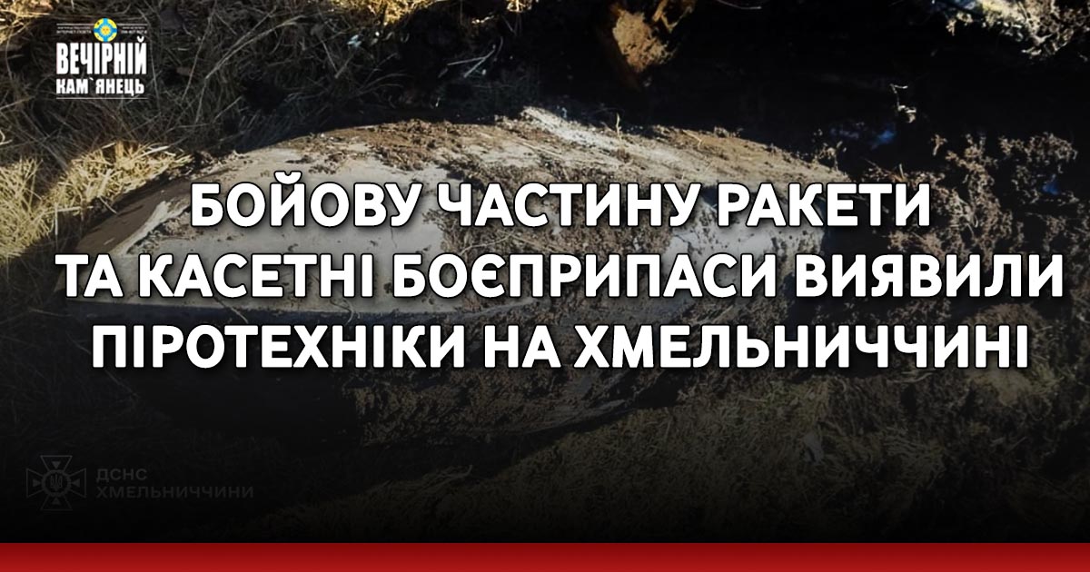 Днями фахівці-піротехніки Хмельниччини знищили на території області бойову частину ракети Х-101 та 37 касетних боєприпасів до неї, які ворог застосував проти України.
