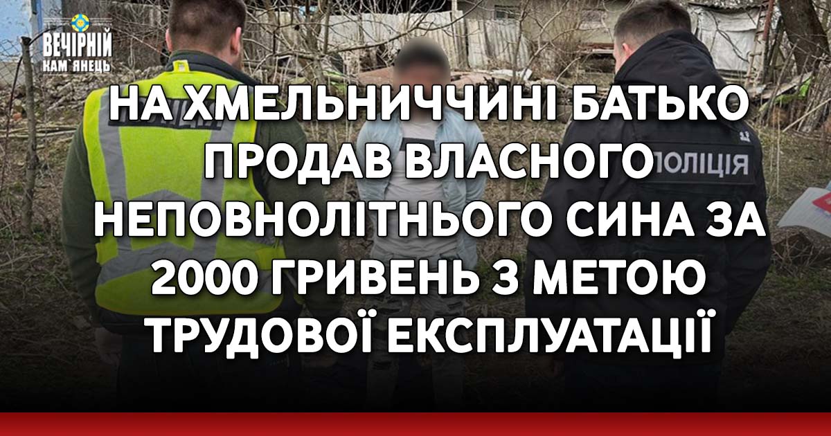 Свою дитину чоловік "оцінив" недорого – у 2000 гривень. За даним фактом слідчі відкрили кримінальне провадження ч. 3 ст. 149 Кримінального кодексу України (торгівля людиною, вчинена щодо неповнолітнього його батьками), повідомили у Поліції Хмельницької області.