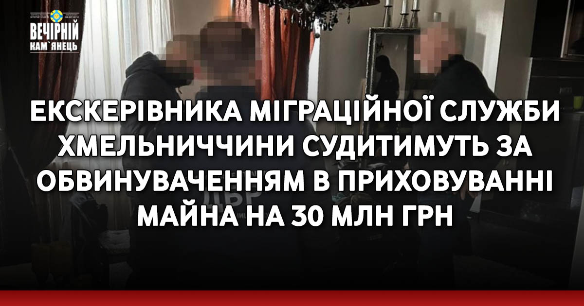 Правоохоронці завершили досудове розслідування щодо колишнього начальника управління Державної міграційної служби у Хмельницькій області, якого обвинувачують у недекларуванні майна на суму понад 30 млн гривень. Йому загрожує до двох років ув’язнення.