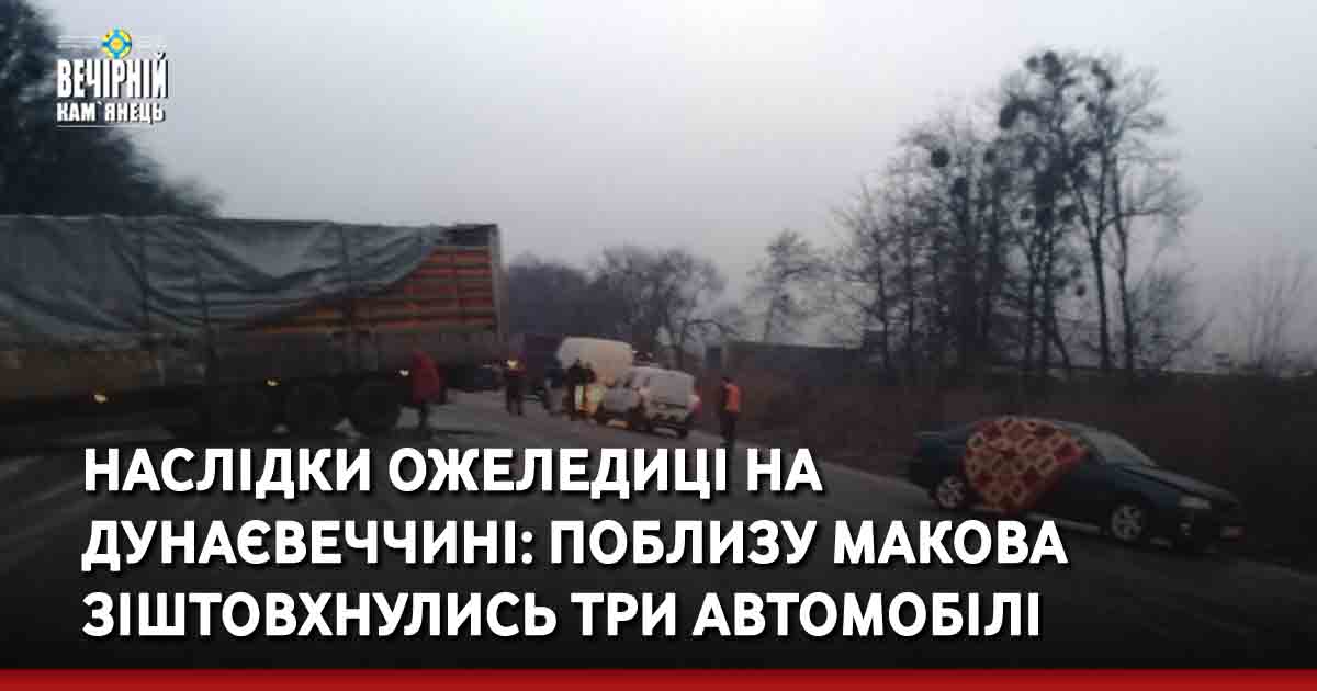 Вантажівка, бус та легковик зіштовхнулись на Дунаєвеччині вчора, 10 грудня, близько 7 години ранку.