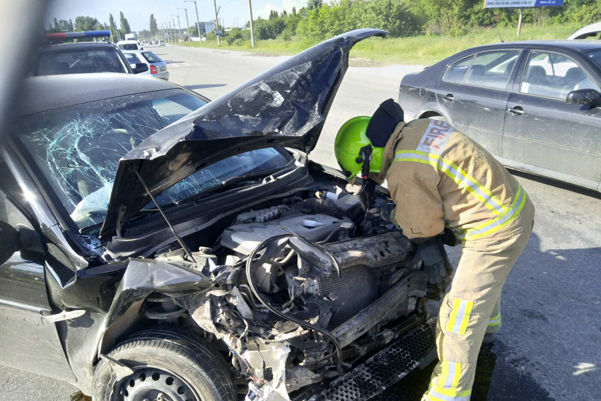 За викликом негайно було направлено черговий караул 5 Державної пожежно-рятувальної частини. На місці пригоди бійці ДСНС огородили місце ДТП, після чого відімкнули акумуляторні батареї від живлення, аби запобігти загорянню легковиків. Далі вогнеборці змили залишки пального з проїжджої частини автодороги.