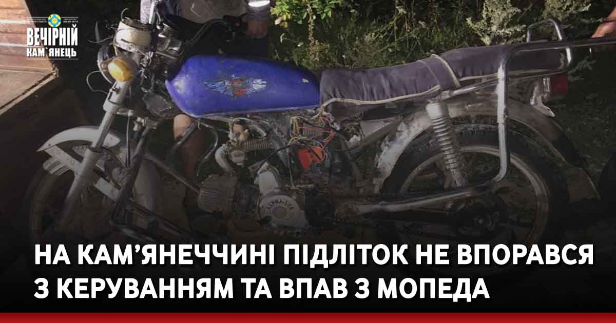 Поліцейські встановили, що 14-річний місцевий житель, керуючи мопедом «Альфа» синього кольору без реєстрації не впорався з керуванням та допустив падіння з мопеда.