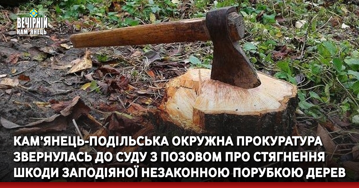 В межах реалізації представницьких повноважень Кам’янець-Подільською окружною прокуратурою пред’явлено позов про відшкодування шкоди завданої навколишньому природному середовищу незаконною порубкою дерев на суму 139 тис. грн, який на даний час перебуває на розгляді у Кам’янець-Подільському міськрайонному суді.
