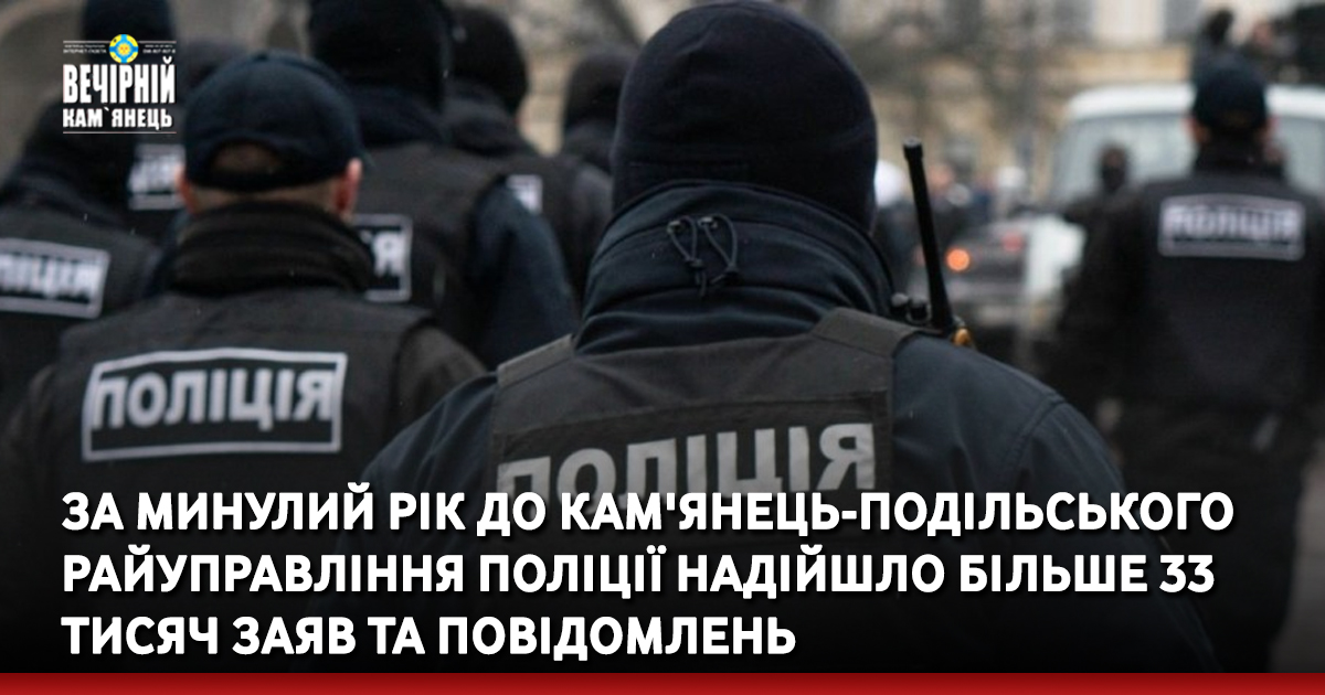 За минулий рік до поліції Кам’янеччини надійшло більше 33 тисяч заяв та повідомлень від громадян, із яких майже дві з половиною тисячі мали ознаки кримінальних правопорушень.