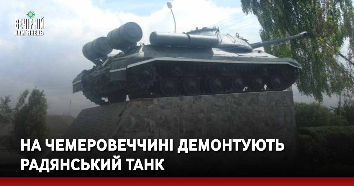 У селищі Чемерівці, що у Кам'янець-Подільському районі, по вулиці Гусятинське шосе демонтують радянський танк «ІС-3».