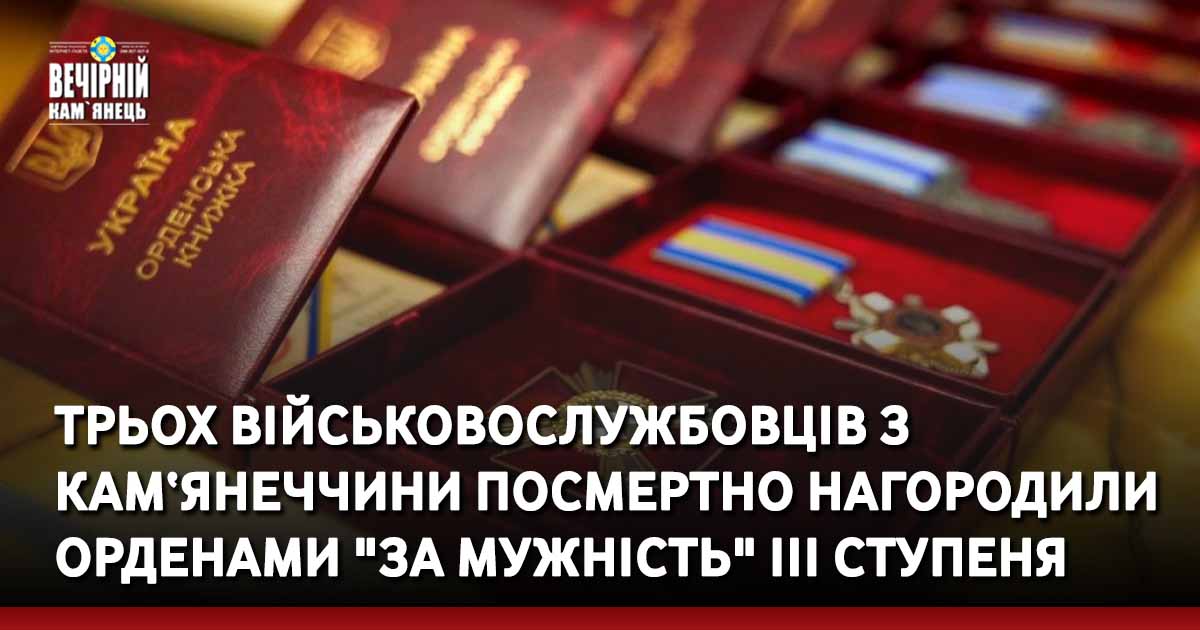 Президент України Володимир Зеленський нагородив орденами «За мужність» військових з Кам’янеччини, які загинули захищаючи країну від російських окупантів.