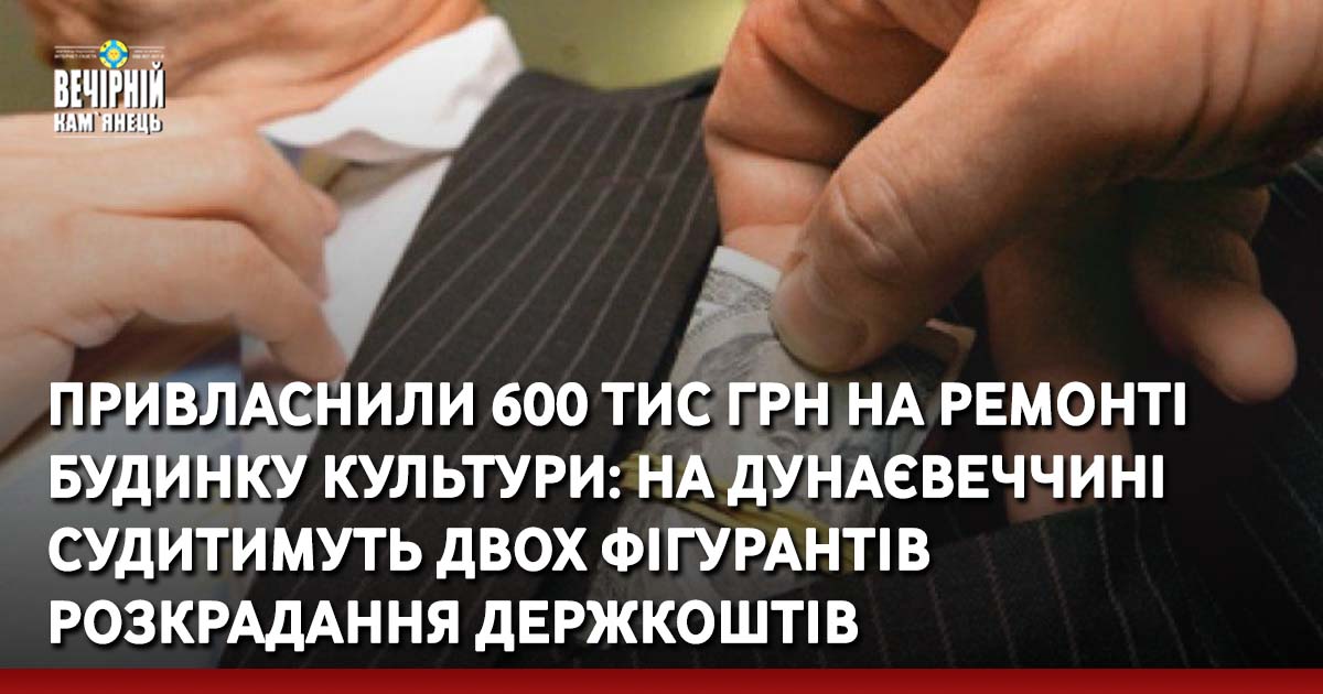 Під час ремонту будинку культури в одному із сіл колишнього Дунаєвецького району було привласнено близько 600 тисяч бюджетних коштів.