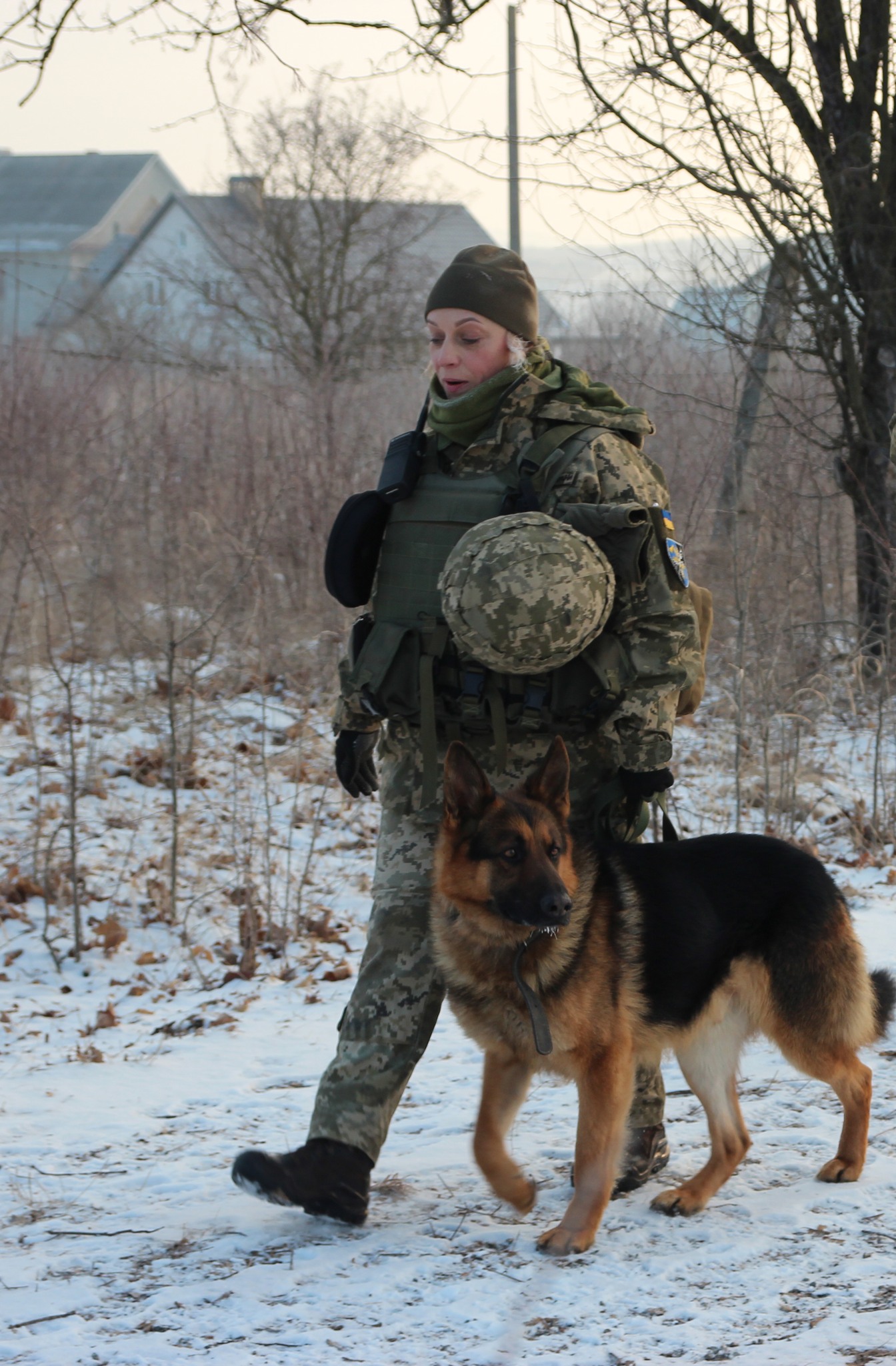 - За час служби довелося працювала із двома службовими собаками. До армії із тваринами не працювала, та це мені не завадило налаштувати контакт із майже усіма собаками, що є в частині, - розповідає Олена, - Перший мій чотирилапий помічник «Арма», вона була для розплоду. Потім тренувала «Оскара». Це прекрасна службова собака, справжній помічник для сапера. Він навчений на тротил, пластид та тен. З ним і їздила на війну.