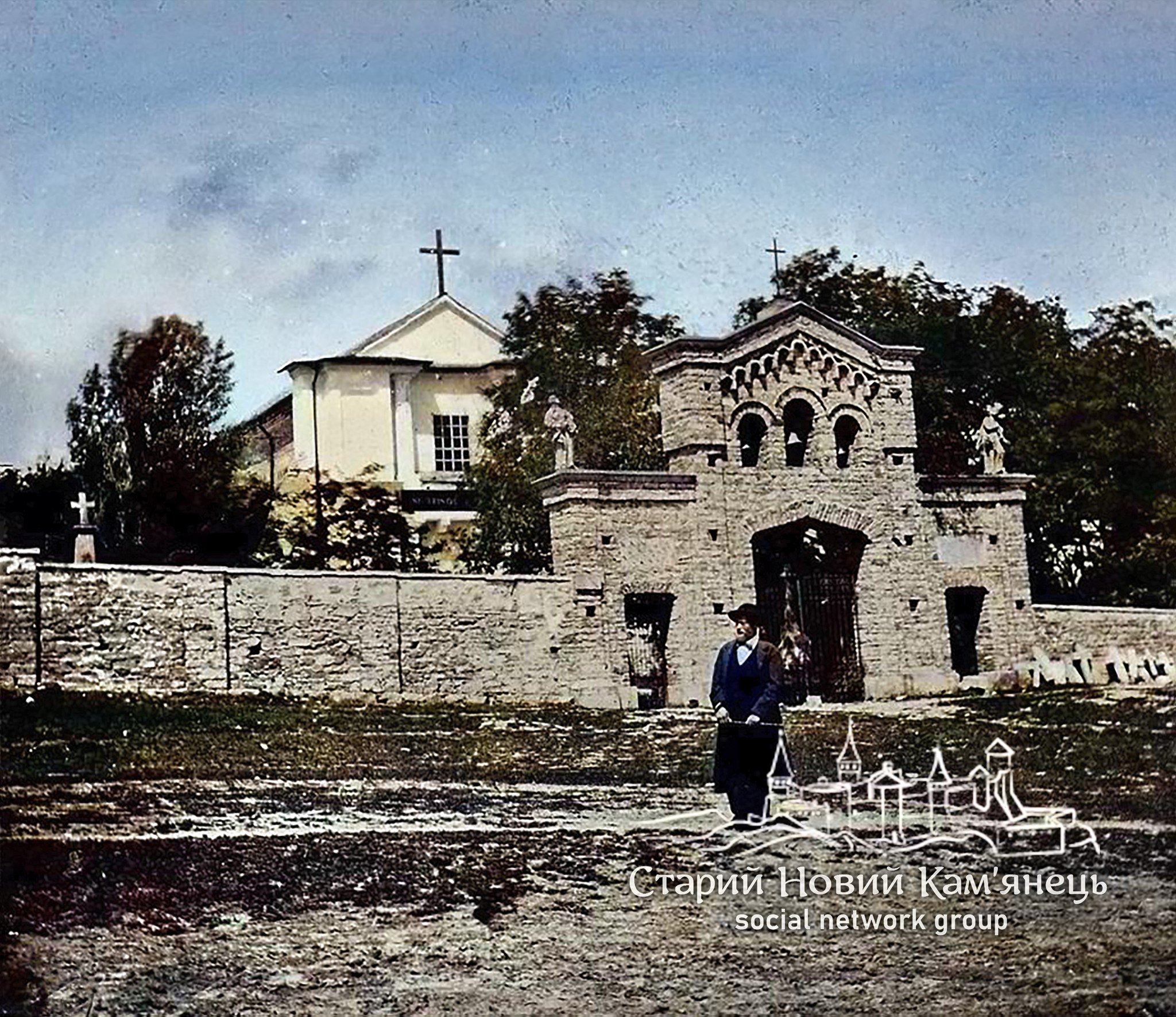 "... міське кладовище, розділене надвоє: вищерозташований, менший, з каплицею візантійських форм, належить до східного обряду, нижчерозташований, більший - католицький. Обидва [кладовища] виникли близько 1796 року. На останньому з них збудовано костелок 1808 року, а кам'яну огорожу і браму з дзвіницею збудовано за кілька останніх років".