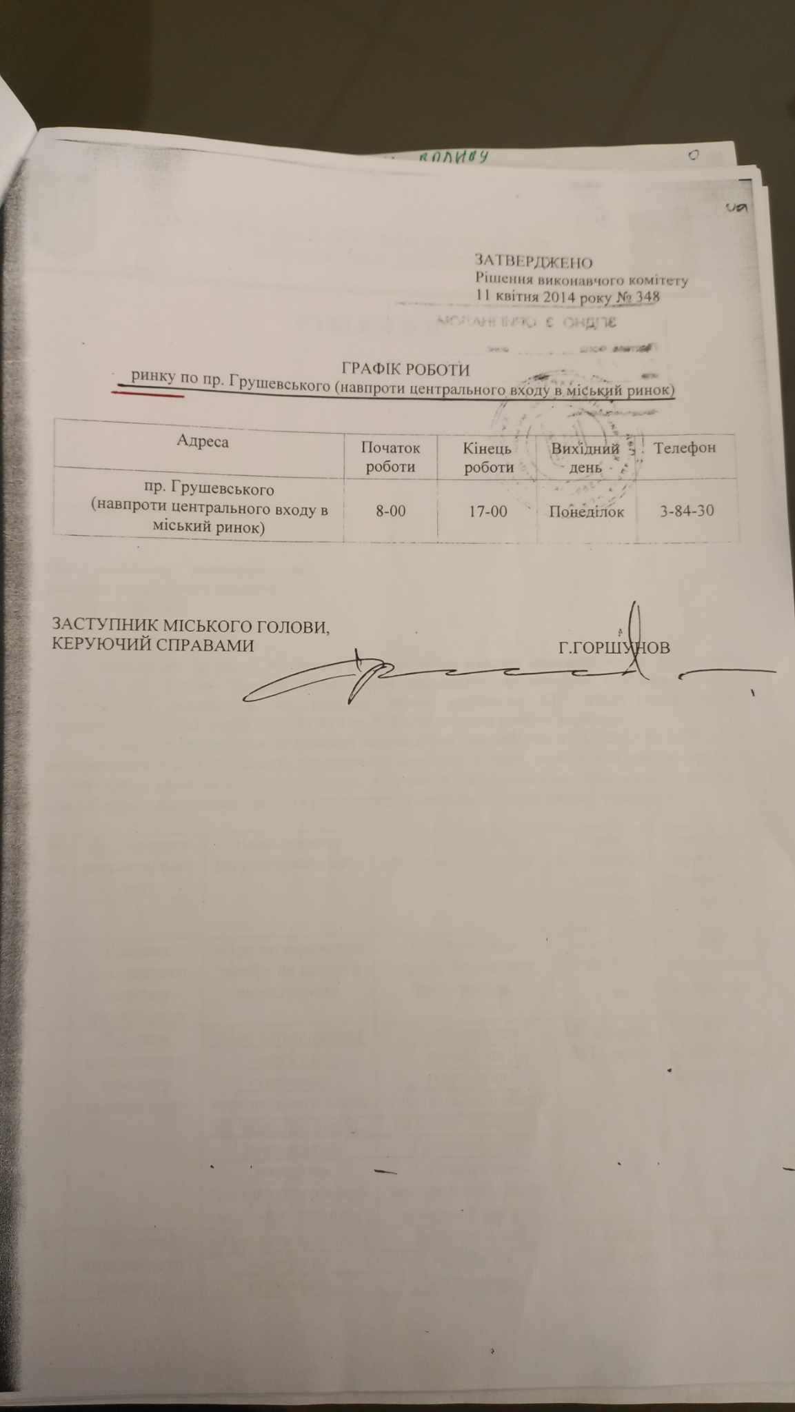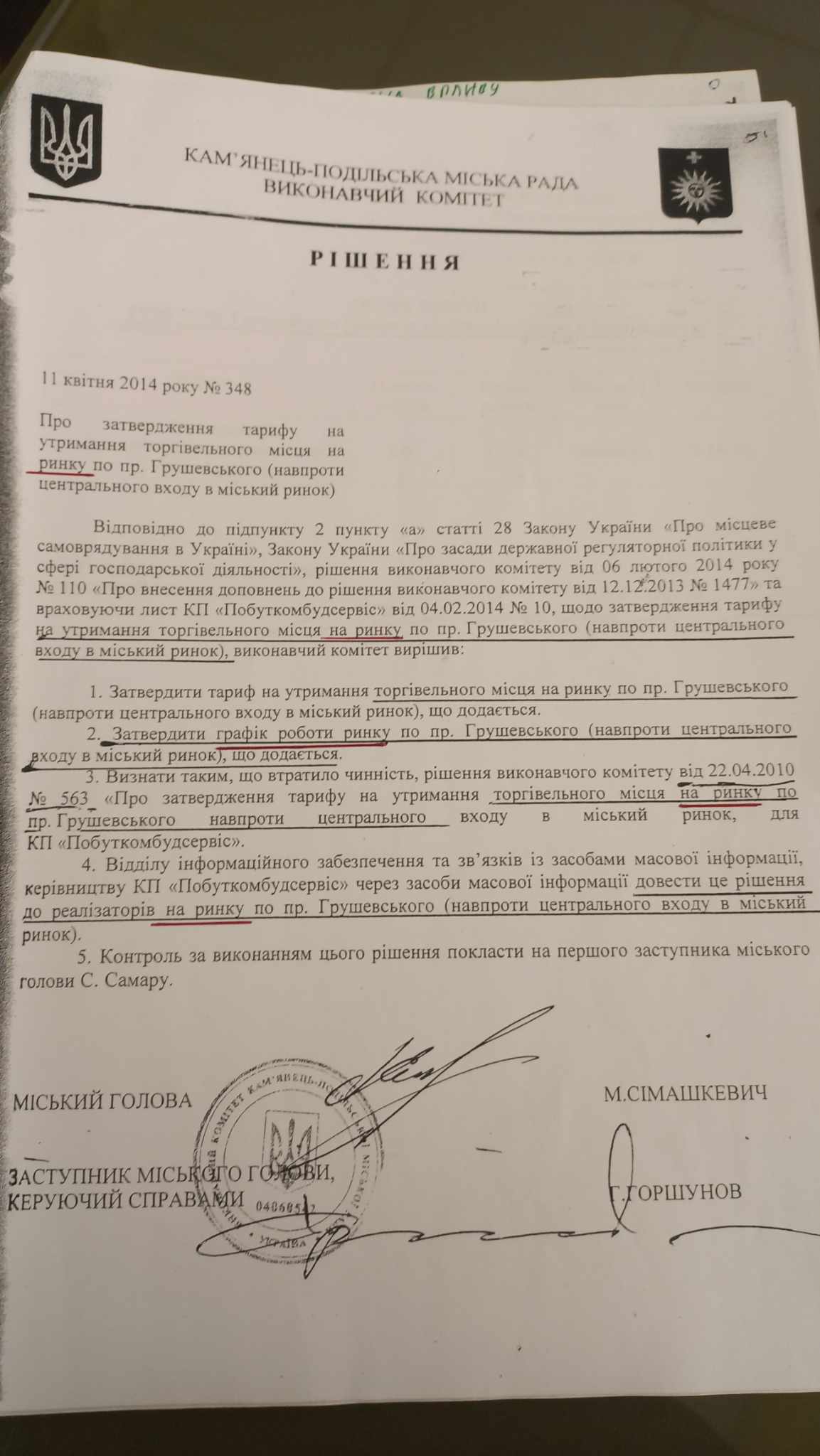 Рішенням виконавчого комітету від 11 квітня 2014 року Кам’янець-Подільської міської ради затверджено графік роботи та тарифи на утримання торгівельних місць на ринку квітів.