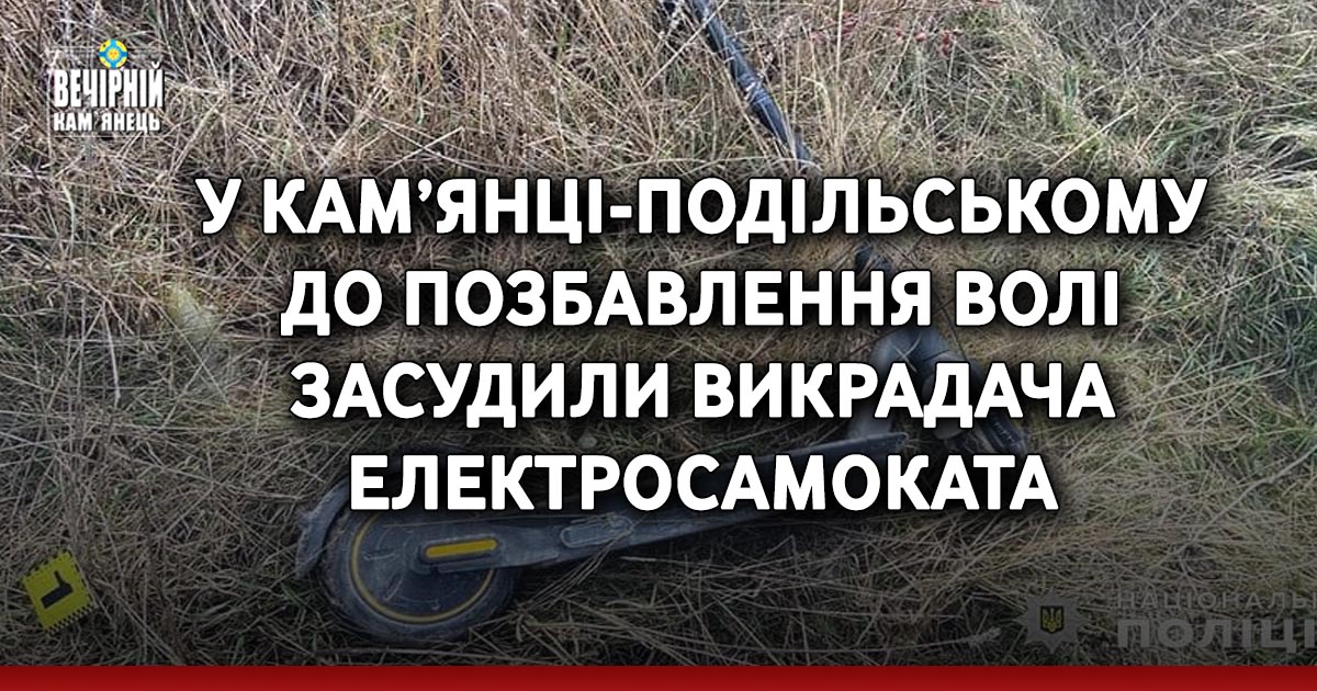 У Кам’янці-Подільському суд виніс вирок 42-річному чоловікові, який викрав електросамокат.