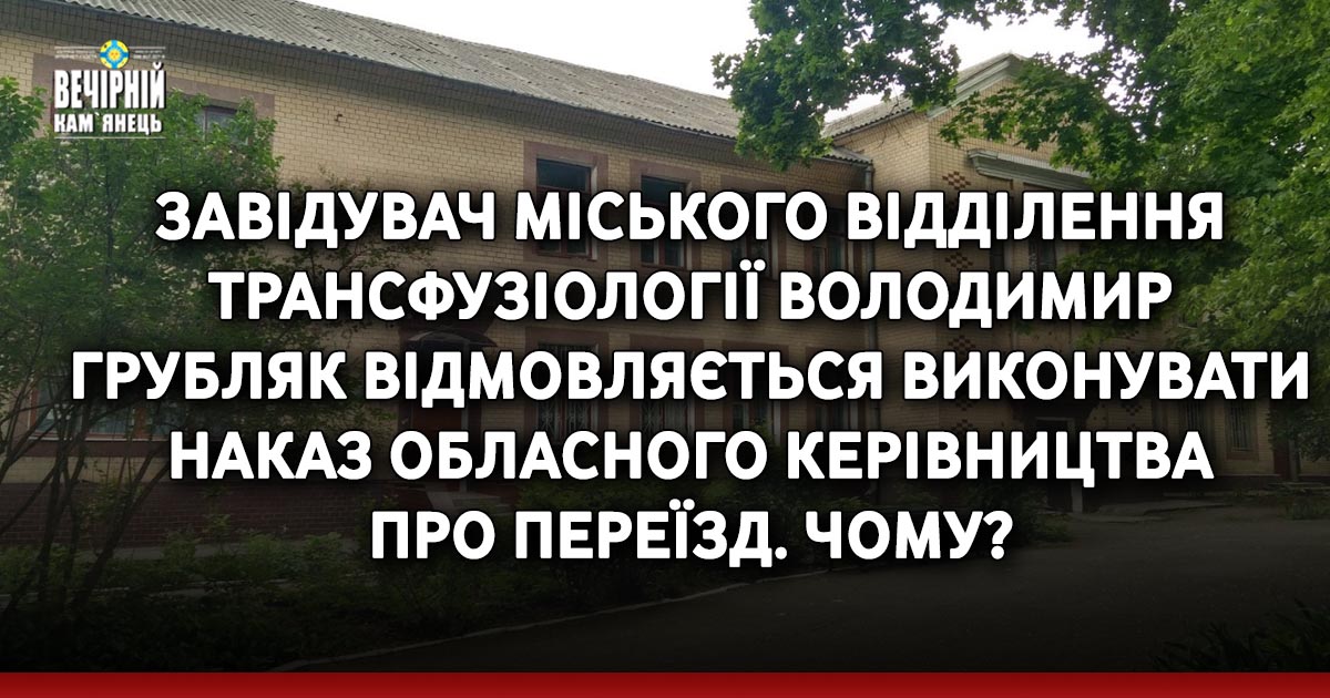 До редакції "Вечірнього Кам'янця" звернувся завідувач Кам'янець-Подільського міського відділення трансфузіології Володимир Грубляк. Володимир скаржиться на неможливість переїзду, адже у новому приміщення наразі тривають ремонтні роботи і, з його слів, ремонт виконано лише на половину.