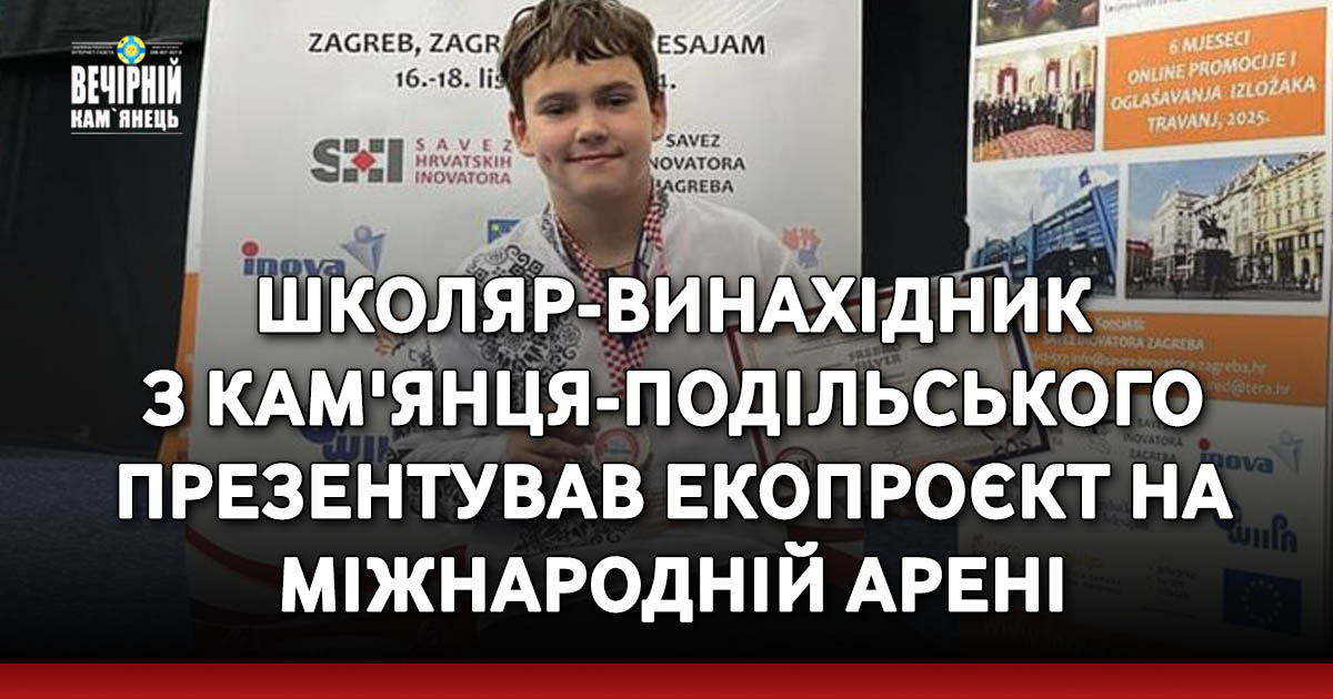 16–19 жовтня в Загребі (Хорватія) відбулася Міжнародна виставка винаходів "INOVA 2024", де свої роботи представили понад 500 учасників з 20 країн світу. Кам'янчанин Артем Ясінський презентував на ній інноваційний пристрій для очищення повітря.