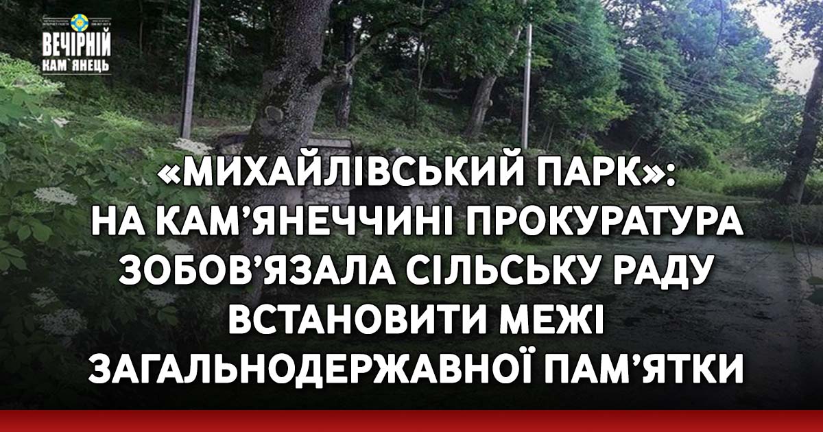 За позовом Кам’янець-Подільської окружної прокуратури Хмельницької області зобов’язано визначити межі парку-пам’ятки садово-паркового мистецтва загальнодержавного значення «Михайлівський парк».