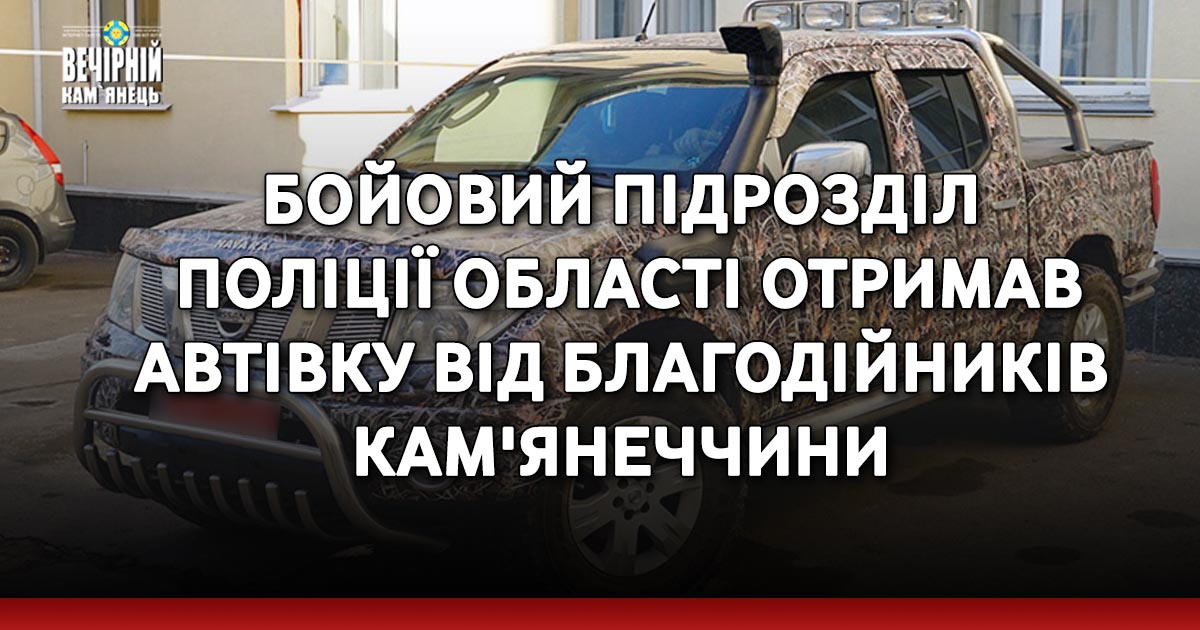 За сприяння Кам’янець-Подільської районної військової адміністрації та акціонерного товариства «Подільський цемент» бійці спецпідрозділу ГУНП в Хмельницькій області, які беруть участь у бойових діях на передовій, отримали високопрохідний автомобіль «Nissan Navara».