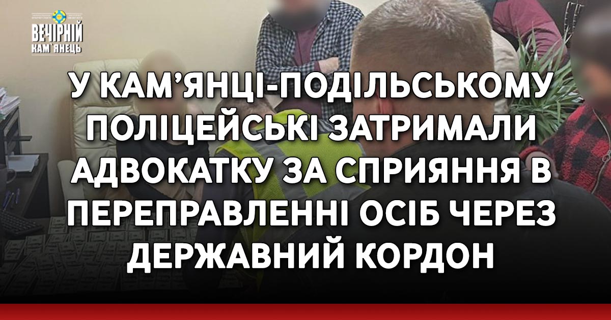 Слідчі слідчого управління ГУНП в Хмельницькій області спільно з оперативниками управління стратегічних розслідувань ДСР НПУ та колегами із УСБУ за процесуального керівництва прокуратури викрили 51-річну адвокатку в зловживанні впливом та сприянні в переправленні осіб через державний кордон.