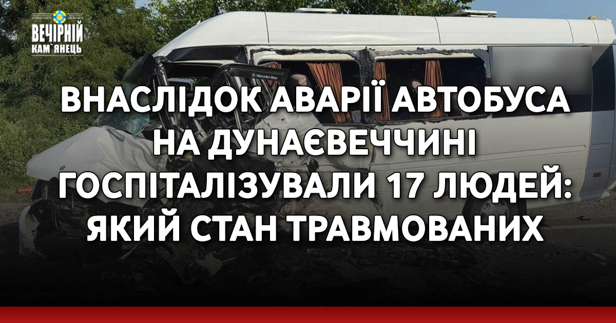 У Кам’янець-Подільському районі 17 людей, серед них двоє дітей, госпіталізували до Дунаєвецької багатопрофільної лікарні після ДТП, що сталась 17 серпня, біля Міцівців Новодунаєвецької громади.