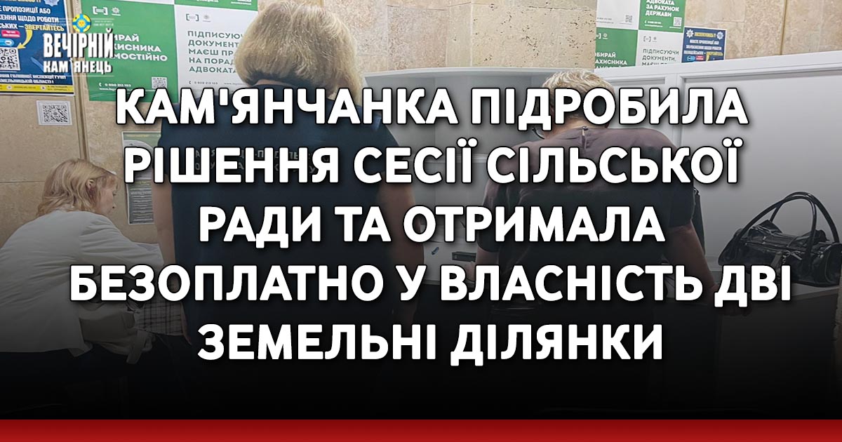 За інформацією прокуратурі, досудовим розслідуванням встановлено, що жителька міста Кам’янця-Подільського, достовірно знаючи, що рішення про передачу їй у власність земельних ділянок в селі Жовтневе Кам’янець-Подільського району Хмельницької області сесією Слобідсько-Кульчієвецької сільської ради не приймалось, виготовила (підробила) виписку з рішення позачергової сесії Слобідсько-Кульчієвецької сільської ради щодо передачі їй земельних ділянок безоплатно у приватну власність, яку в подальшому, з метою реєстрації права власності на земельні ділянки, шляхом обману, під час державної реєстрації вказаних земельних ділянок надала державним реєстраторам.