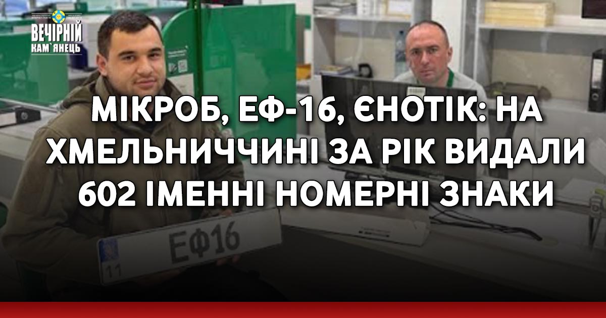 Як розповіли у Сервісному центрі МВС, загалом у 2025 році сервісні центри МВС в Хмельницькій області видали 602 індивідуальні номерні знаки – на 130 більше, ніж торік.