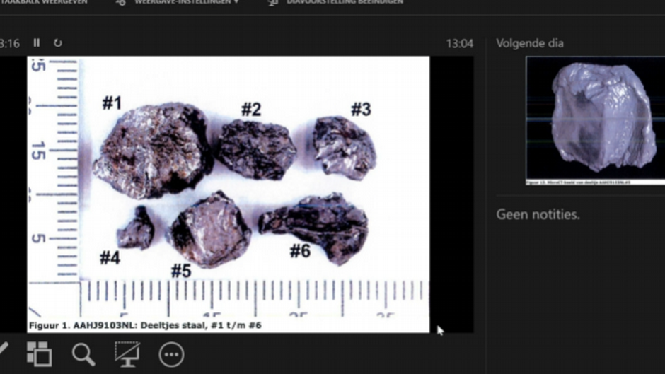 Суд продемонстрував матеріали справи, в яких на підставі аналізу декількох тисяч фрагментів ракети зроблено висновок, що лайнер вразила ракета модифікації 9М38М1 з боєголовкою 9Н314М. Про це свідчать результати експертиз, порівняння уламків і фрагментів - зокрема двотаврів ("метеликів") і інших уражаючих елементів - з серійними зразками таких ракет. Так, лише з тіла капітана повітряного судна вилучили, згідно з матеріалами справи, понад 100 фрагментів, включаючи того самого "метелика", яким начиняли ракети для "Бука".