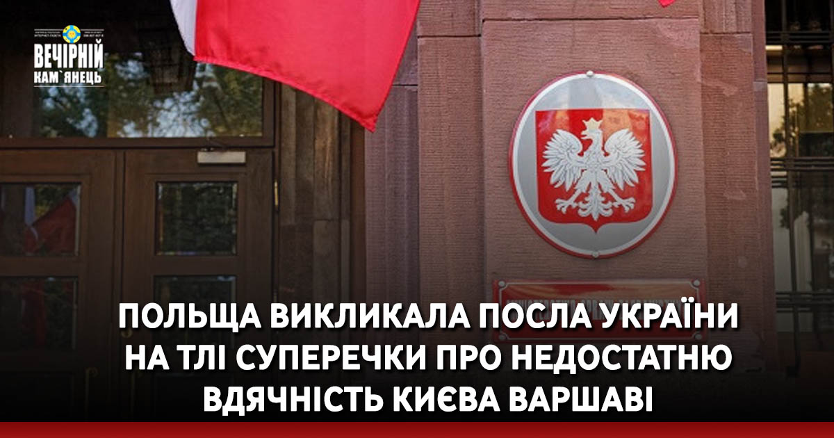 Міністерство закордонних справ Польщі у вівторок увечері викликало посла України Василя Зварича після того, як українське МЗС викликало польського посла на тлі критики з Варшави про нібито недостатню вдячність Києва.