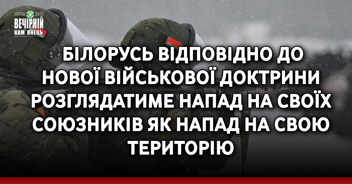 Згідно з новою військовою доктриною Білорусь розглядатиме напад на своїх союзників як напад на свою територію. Про це заявив начальник інформаційно-аналітичного управління Генштабу Збройних сил Білорусі Артем Буторін в ефірі білоруського телеканалу СТВ.