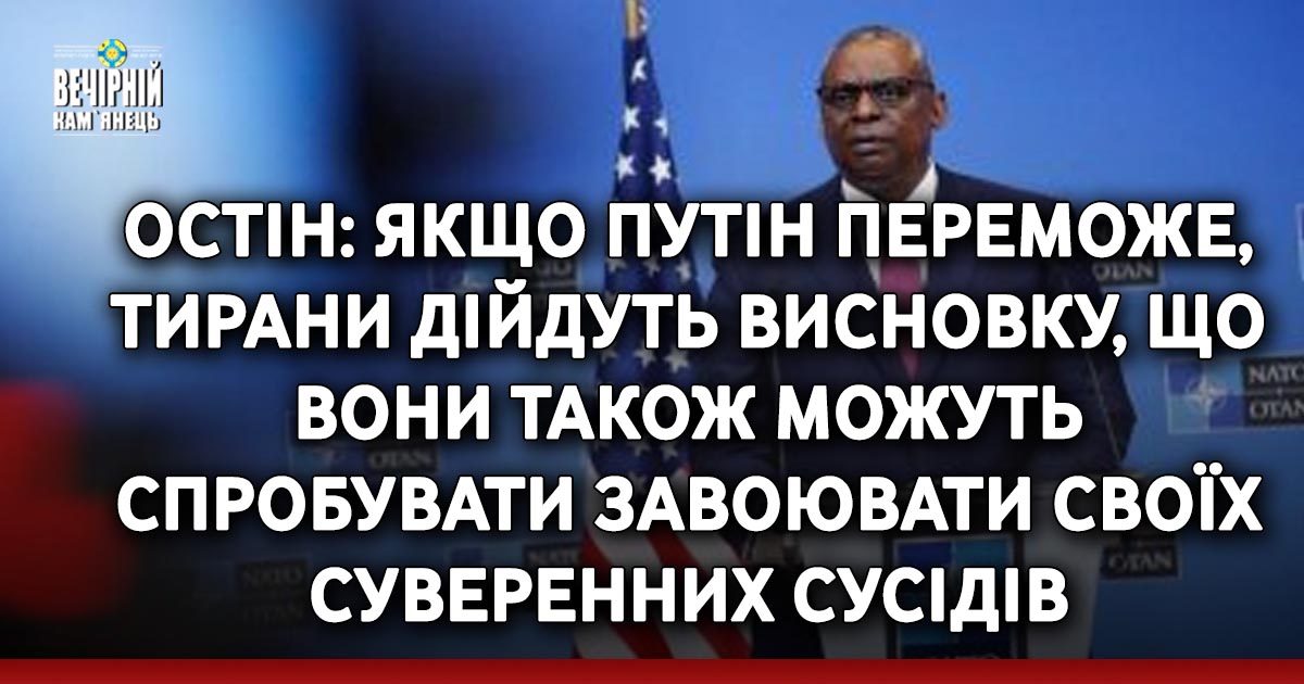 "Якщо [нелегітимний президент країни-агресора РФ Володимир] Путін переможе, тирани дійдуть висновку, що вони також можуть спробувати вторгнутися й завоювати своїх суверенних сусідів. Це залишить Європу під тінню Путіна й зробить світ жорстокішим і хаотичнішим. Тому боротьба України за свободу й безпеку важлива для всіх нас", – заявив глава Пентагону.