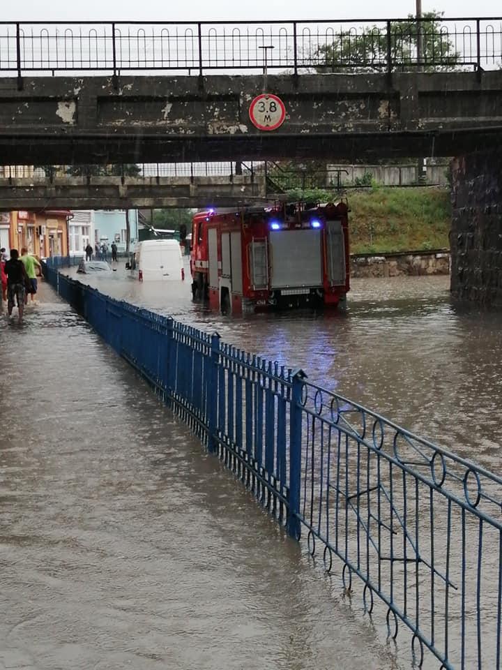 Через сильну зливу затопило Підволочиськ. Про це повідомляють місцеві жителі у соцмережах. Зокрема, Vitaliy Atamanyuk зняв на відео, як зараз виглядає дорога біля мосту в центральній частині Підволочиська. Через воду рух транспорту паралізовано.