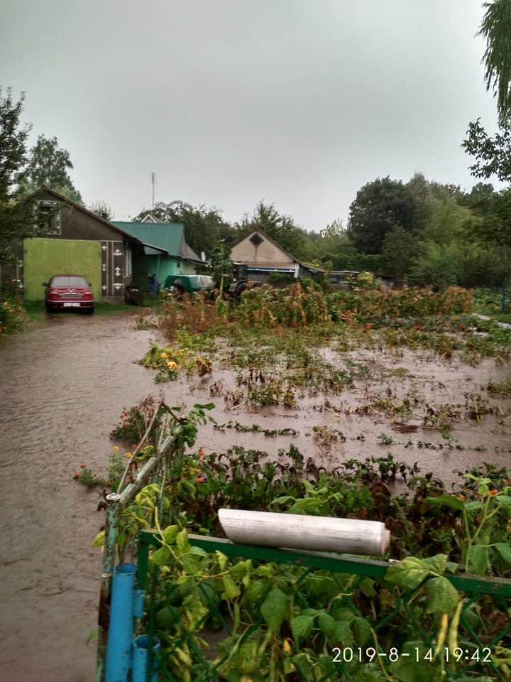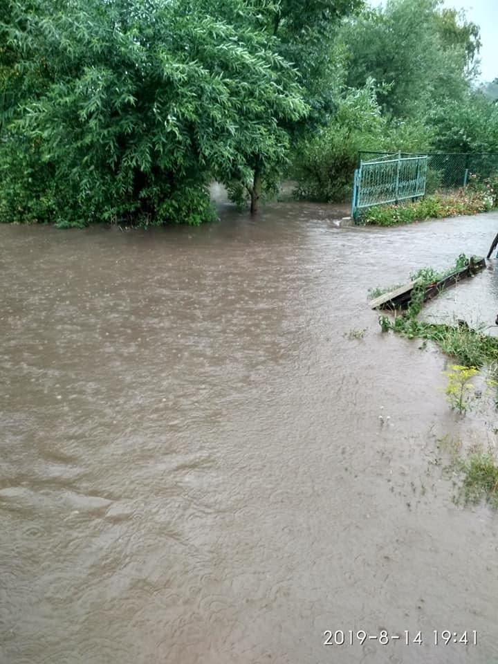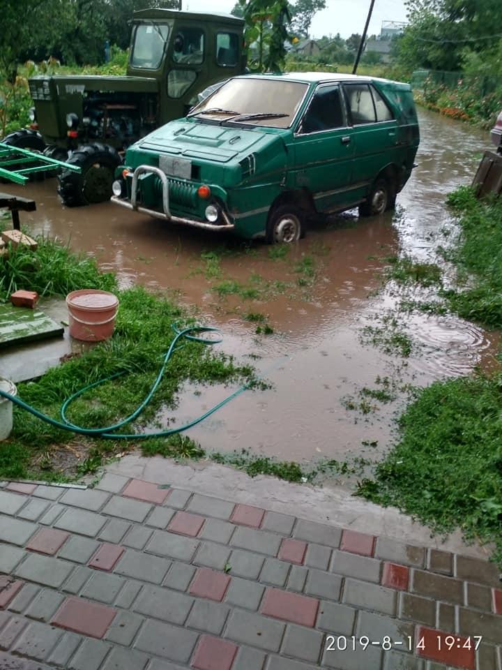 Подібна ситуація і в сусідньому Волочиську. Там через сильну зливу затопило городи та двори. Наразі очікуємо офіційний коментар управління ДСНС.