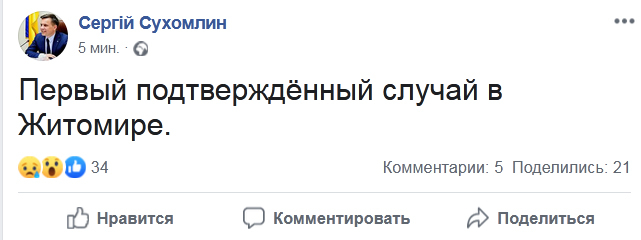 В Житомирі 19 березня є перший підтверджений випадок коронавірусу.