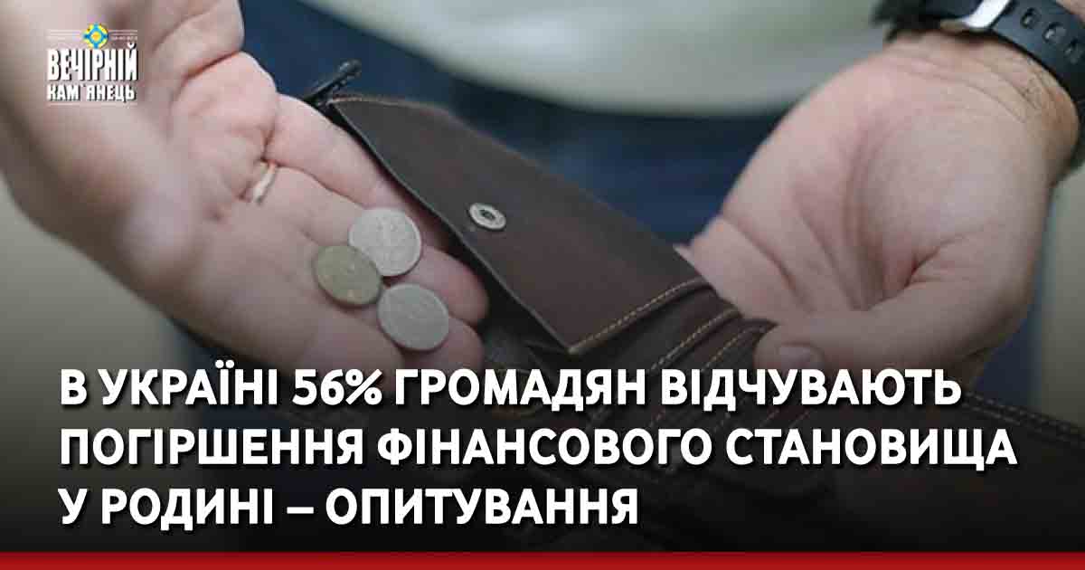 В Україні 56% громадян відчувають погіршення фінансової ситуації у родині, а лише 7% відчувають покращення.