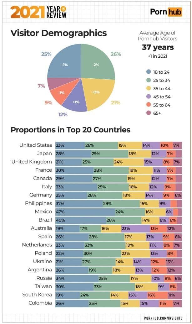 Так, найчастіше сайт з контентом для дорослих відвідували у США, Великій Британії, Японії, Фракції та Італії. Україна у цій категорії посідає 14-те місце.